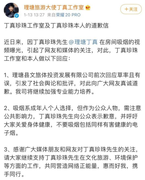 随后,丁真工作室及丁真本人,就本次事件发出道歉信。