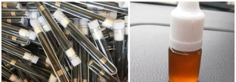 “大麻电子烟”长度大概30cm左右,外形为无色、黄色至褐色粘稠液体,与普通电子烟外表看起来并无太大差别,常出现在酒吧、KTV等娱乐场所,往往一群人聚在一起吸食,因外表酷似普通电子烟而具有极强的迷惑性。