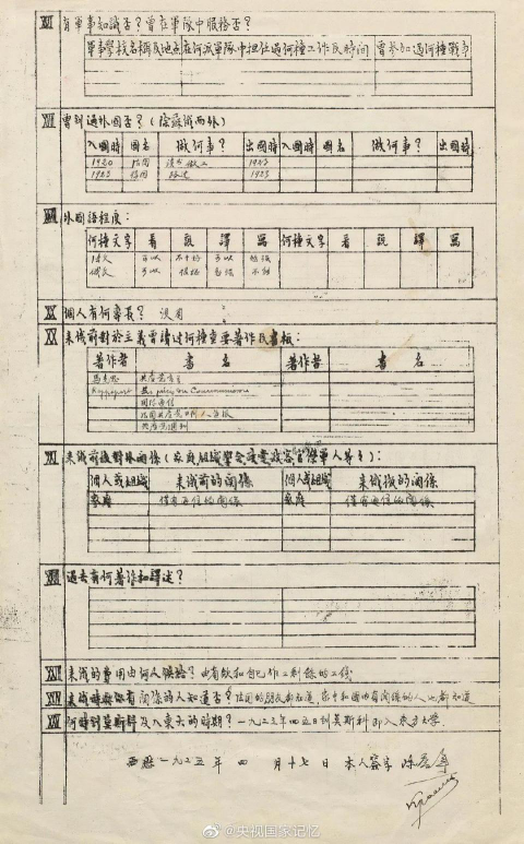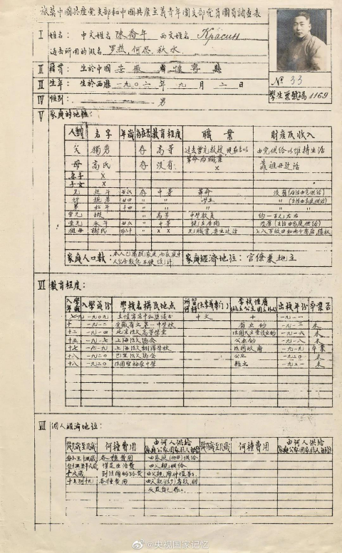 陈独秀之子陈乔年履历表首度公开