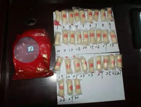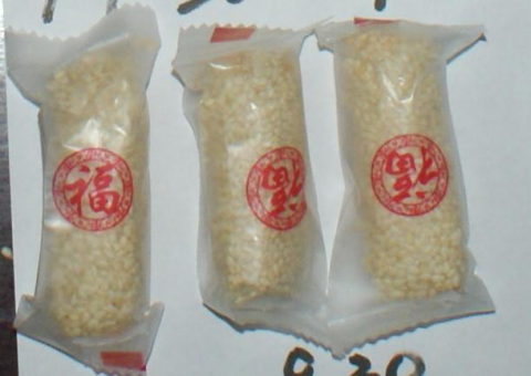 靖州警方获取线索,有人将装有毒品的芝麻糖混入至礼品袋,从外省邮寄至靖州。经查证,贩毒嫌疑人将麻古伪装成“芝麻糖”,全部用印有“送礼佳品”字样的包装袋包装,每袋里面有30小包用印有“福”字的小袋真空透明包装,可见芝麻颗粒状物品,伪装手段十分隐秘。