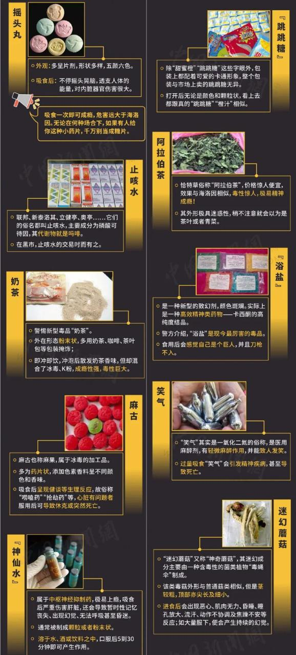 近年来,随着互联网的发展,新型毒品层出不穷,这些毒品经过“乔装打扮”成为奶茶、电子烟、巧克力、止咳水等潜伏在我们身边,让人难以分辨、放松警惕。