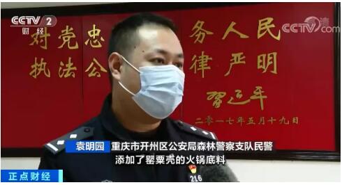 重庆市开州区公安局森林警察支队民警 袁明园:厨师把添加罂粟壳的情况告诉给老板,老板对罂粟壳对人体的危害估计不足,所以依然在销售添加了罂粟壳的火锅底料制作的火锅。