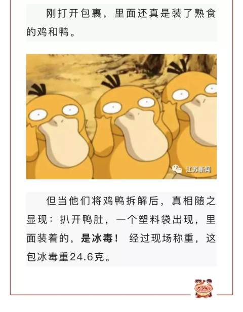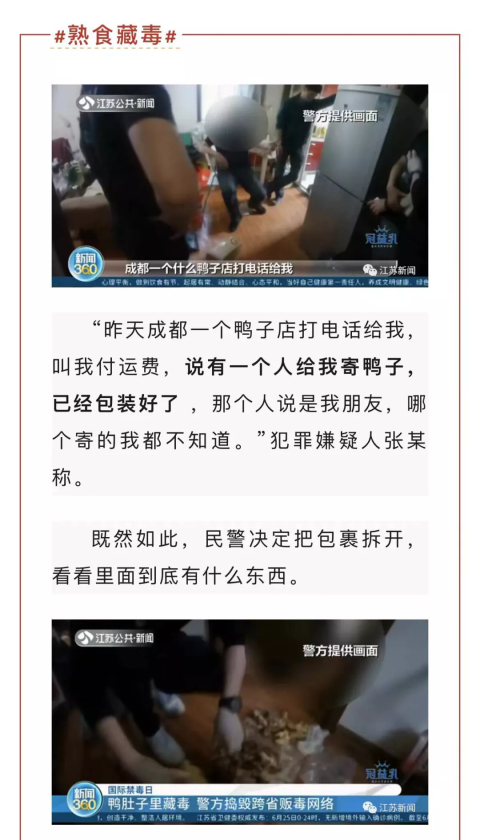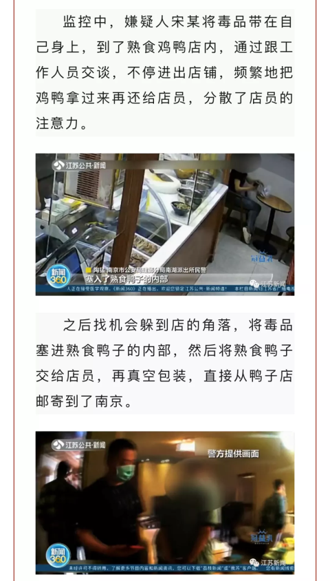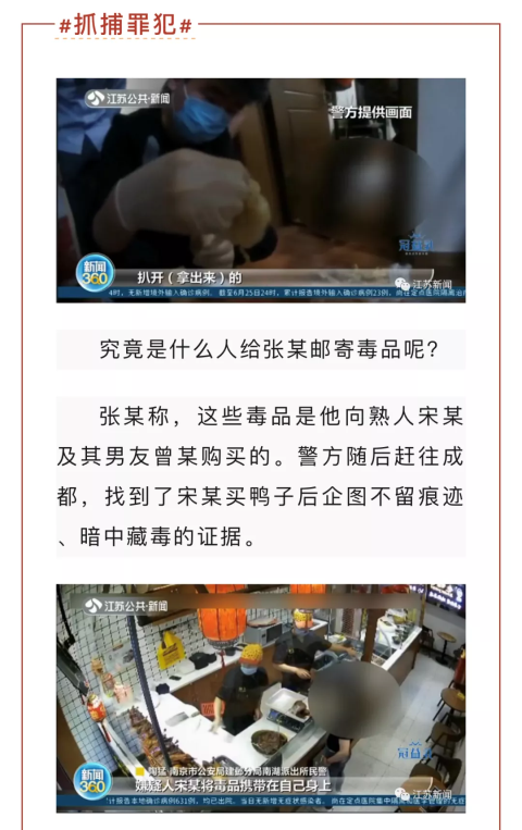 宋某某先与男友曾某买了一只熟食鸭子,然后将25克冰毒塞入其中,从武汉发快递到南京。据了解,武汉公安机关早就掌握了张某涉毒的线索,所以就在张某刚取到这份快递时,民警突然现身将他抓获。民警怀疑快递里的鸭子有猫腻,于是仔细检查了一番,最后在鸭肚子里找到了涉案冰毒。
