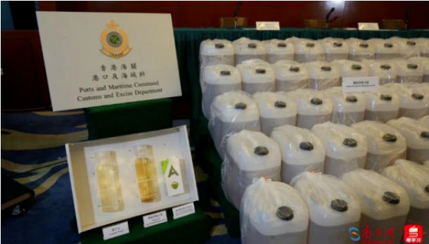 △海关人员查获1.8吨怀疑高纯度的液态冰毒,市值为11亿港元。