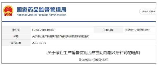 然而在西布曲明作为减肥药物上市后,不断有使用期间和使用后发生不良反应的报告。2010年,中国国家食品药品监督管理局决定停止西布曲明制剂和原料药在我国的生产、销售和使用,撤销其批准证明文件,已上市销售的药品由生产企业负责召回销毁。