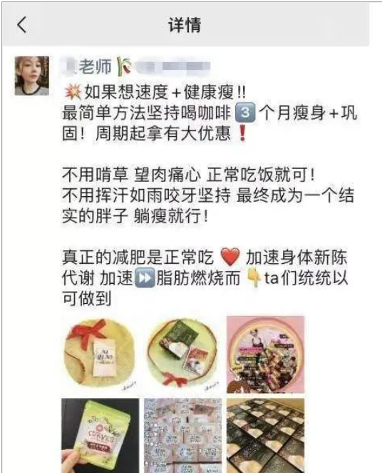 去年3月,台州黄岩的潘先生在网上看到了一款减肥产品,很是心动,于是便按照网上的说明,添加了微商代理的微信,购买了一盒减肥咖啡。收到货后,潘先生立马冲泡了一杯。 然而当晚,潘先生的身体就出现心慌、口渴、饱腹、 失眠等症状。