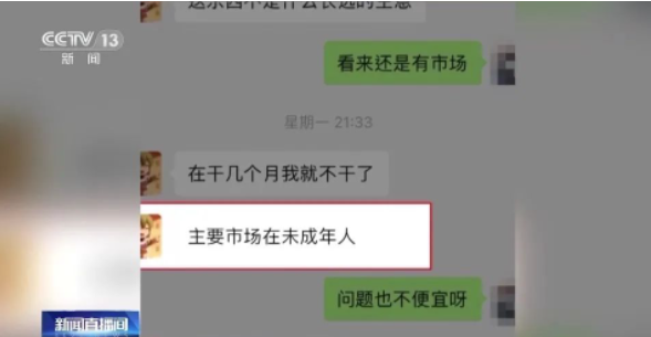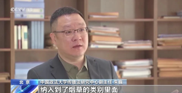 中国政法大学传播法研究中心副主任朱巍:电子烟管理办法政策出来了,实际把电子烟的全类别纳入到了烟草的类别里面,特别是《未成年人保护法》里面也有明确的规定,这个烟草对孩子,一定是敬而远之的,宣传也不行,销售也不行,你在附近开店都不行,所以说法律是明确规定的。