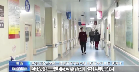 西安交通大学第一附属医院呼吸与危重症医学科主任李满祥:我觉得不仅仅是真正的香烟,也包括电子烟,特别是青少年正在成长发育日,以后的路还很长,不能因为吸烟给将来带来、留下一些隐患,会影响你个人的身体的健康,所以一定要远离香烟、包括电子烟。