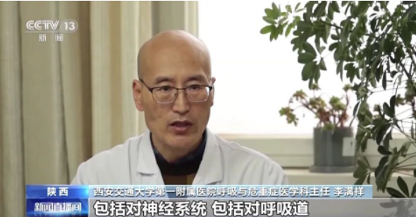 西安交通大学第一附属医院呼吸与危重症医学科主任 李满祥:电子烟其实长期的吸了以后,对人体也会带来方方面面的危害,包括对神经系统、对呼吸道、对心血管系统都会产生不良的影响。我记得有一个研究提示,尼古丁虽然没有直接的致癌作用,但是它可以作为一个致癌的启动的扳手,或者一个启动的因素,它可以间接地来导致人体很多组织发生癌症。