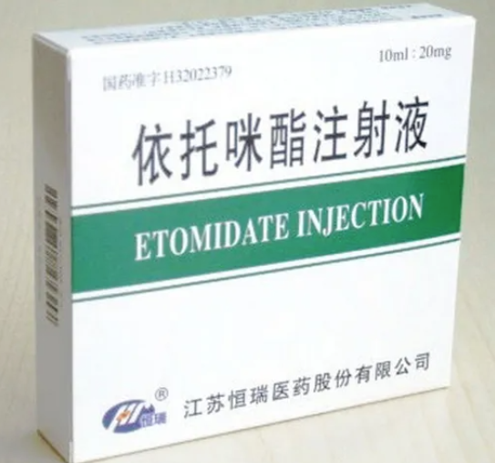 依托咪酯,一种不溶于水的白色粉末状物质,为非巴比妥类静脉短效催眠药,在医疗上主要有水剂和乳剂两种剂型。因其对呼吸和循环系统的影响较小,且无组胺释放作用,因此是麻醉诱导常用的药物之一。在临床上主要适用于全麻诱导,也可用于短时手术麻醉。