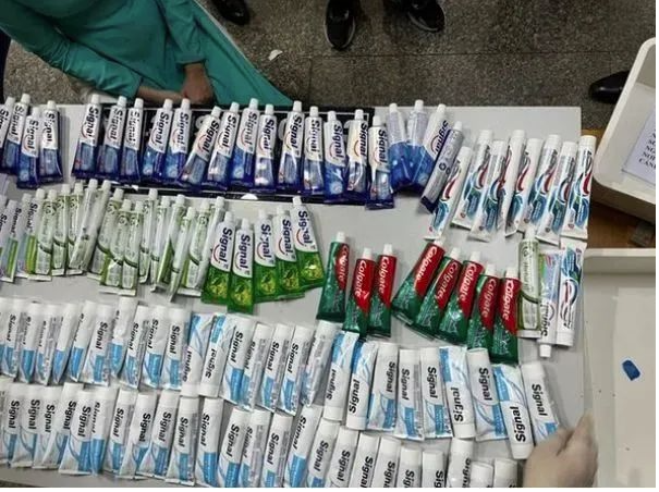 这些毒品被藏匿在157支牙膏管内。涉案者包括37岁的乘务长和3名空乘。