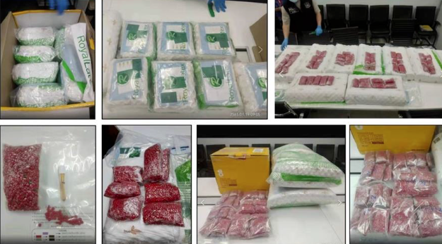 缉毒部门在机场的国际快递网点发现的一乳胶枕头包裹里,查获50袋夹藏的毒品麻古(共102000粒、重9.71533千克)。