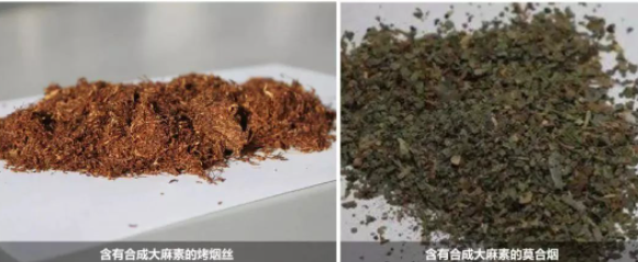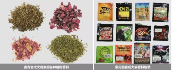 外观特点:用喷涂或浸泡等方式在各种颜色的叶片或花瓣添加合成大麻素类新精神活性物质。从外观看跟用于香薰的植物香料是一样的。