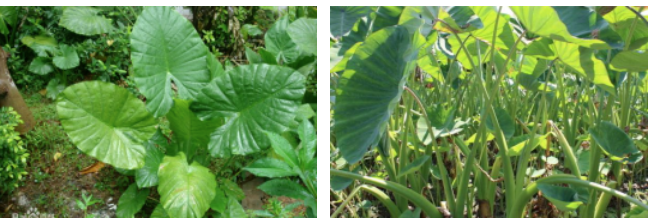 滴水观音,又名海芋,是天南星科海芋属的大型常绿草本植物。海芋茎和叶内的汁液有毒,含草酸钙、氢氰酸及生物碱。误食会引致舌头麻木、肿大及中枢神经中毒,皮外接触会引致痕痒、麻木及发疹。(左图为海芋、右图为芋头)