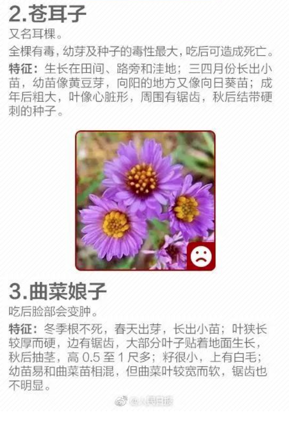 在广东,常见的野菜有蒲公英、苦麦菜、野茼蒿、白花蒿、荠菜等。部分野菜存在易混淆的有毒品种,需谨慎辨别。那么,常见不可食用的有毒植物有哪些?