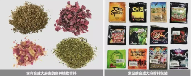 外观特点:用喷涂或浸泡等方式在各种颜色的叶片或花瓣添加合成大麻素类新精神活性物质。从外观看跟用于香薰的植物香料是一样的。