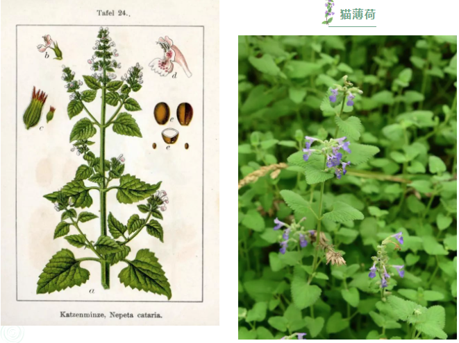 猫薄荷中文名叫做荆芥,是一种草本植物。猫薄荷中含有荆芥内酯,这种物质会让猫像人吸食了大麻等毒品一样兴奋,有的会非常兴奋四处翻滚,甚至会立即失去理智,因此被戏称“猫界大麻”。