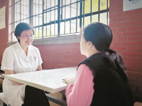 杜江主任(左)和患者交流 采访对象提供