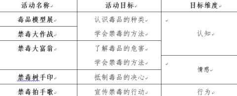 1. 主题名称:健康生活不“毒”行 实小娃娃在行动