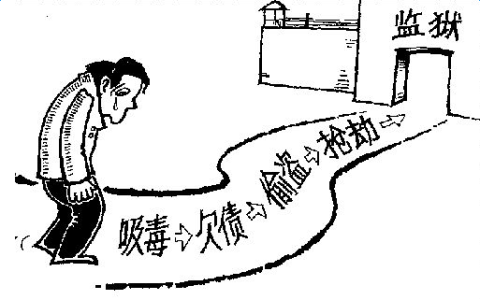 案例 1:15 岁女孩刘韵,一向活泼好学,担任初三年级的团干部。知道一位同学吸毒之后,她非常好奇,打听同学吸毒后的感受,并逐渐产生了试一试的想法。最后,她也尝试起吸毒。第一次吸毒后,刘韵的感觉并不好,觉得肚子饿但吃不下去东西,口干、睡不着觉,她在日记中详细地记录了当时的感觉。但是,第二次、第三次之后,她就再也无法控制自己。毒瘾发作时,好像成千上万只小虫子在啃咬骨头,痛不欲生。在不到一年的时间里,她辍学出走,为筹集毒资出入歌舞厅,最终被送进强制戒毒所。