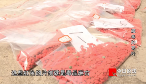 茶叶到站后的第三天,准备搬走茶叶包裹的童某被蹲守多时的警方逮捕。警方随即对三箱茶叶中的可疑物品进行司法鉴定,确定这些茶叶内用胶带包裹着的红色的片剂就是毒品麻古,共计3402.5克。