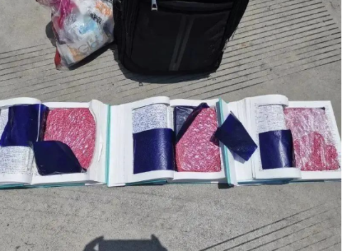 缉毒民警在边防检查中发现,一名旅客双肩包内的口罩厚度有明显差异。经拆卸检查,每个口罩夹层内均藏有毒品冰毒,共计100包,1.45公斤。