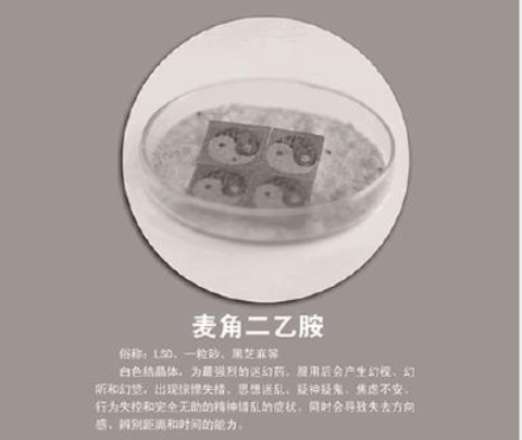 麦角酸二乙胺,又名麦角二乙酰胺、麦角乙二胺,简称LSD,是一种无色、无嗅、无味的液体,是一种强烈的半人工致幻剂。目前,在非法市场上发现的LSD剂型多为纸型(如邮票型)或胶囊。不法分子将预先印好的纸张浸入毒品溶液,制成与传统邮票大小、颜色近似的成品。为了追求刺激,在好奇心的驱使下,一些人将目光瞄准了该种“邮票”。殊不知,这种行为如饮鸩止渴。