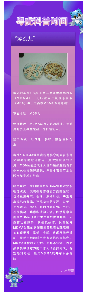 实际上,摇头丸是一种混合多种毒品成分的混合类毒品,既能让人亢奋又能致幻,故又被称为“迷魂药”。