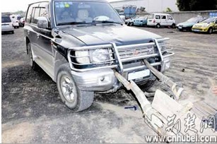 肇事的越野车停顿仅几秒钟后,加速朝鄂州的方向逃走了。
