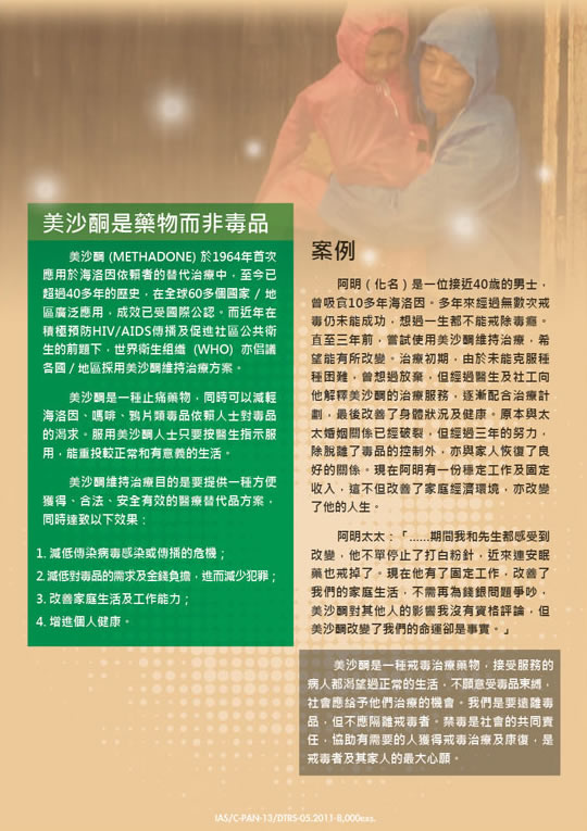 美沙酮宣传单张(澳门禁毒网提供)