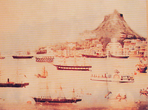 | 2-35 香港旧景。鸦片战争失败,香港被割让后,英国鸦片贩子便将香港当成了贩卖鸦片的据点,将大量鸦片运到香港囤积,然后再运往中国其他口岸。 |