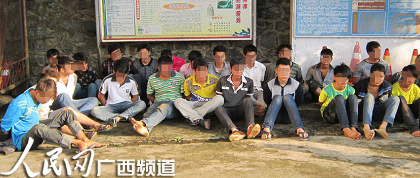 人民网田东11月6日电 11月1日,田东县公安局经缜密侦查,调集优势警力,在该县三县交界处一边远山村一举抓获“聚餐”吸毒的田东、田阳、巴马、大化四县吸毒人员二十一人。