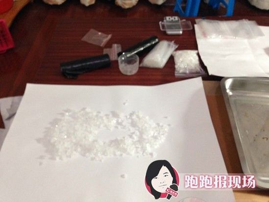 记者在现场看到,用密封袋装的冰毒和冰糖外貌相似,纯白、透明状。屋内还有一个专门的房间用来提纯,在该操作的房间内,记者看到,床架子上摆满包括量杯、分装盒、器皿等在内的各种提纯工具。