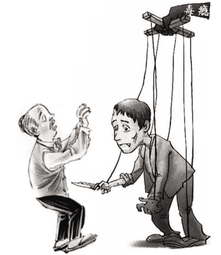 让尹斌万万没有想到的是,尹国强刑满出狱后,居然与吸毒人员混在了一起,并沾染上了毒瘾。在家无所事事的尹国强为吸毒整日向老父亲要钱,却总是被尹斌拒绝。尹斌知道儿子吸毒后,开始对其软硬兼施,但无论是好言相劝还是将其反锁家中,对尹国强都收效甚微。尹国强始终不听父亲的规劝,只要口袋中有钱就去吸毒。案发这一天,尹国强再次向父亲要钱,被尹斌厉声拒绝。无法抗拒毒品诱惑的尹国强对此勃然大怒,趁父亲毫无防备之时,冲进厨房抄起菜刀,对正在看电视的父亲连砍了二十余刀。尹斌当场死亡,尹国强随后畏罪潜逃。