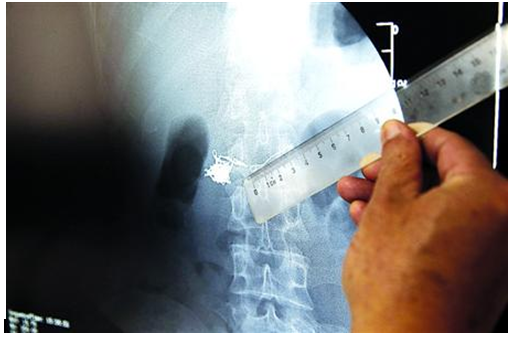22点40分,孙明被带到对面的X光室,检查从颈部做到下腹部,包括检查是否有异物,是否有不适合强戒的疾病,比如肺积水等。孙明是24日当天彭浦新村派出所送来的第三个吸毒者。24日下午,他们刚送来一个体内有异物的吸毒者张雷,X光显示,他的喉部、腹部就有回形针。