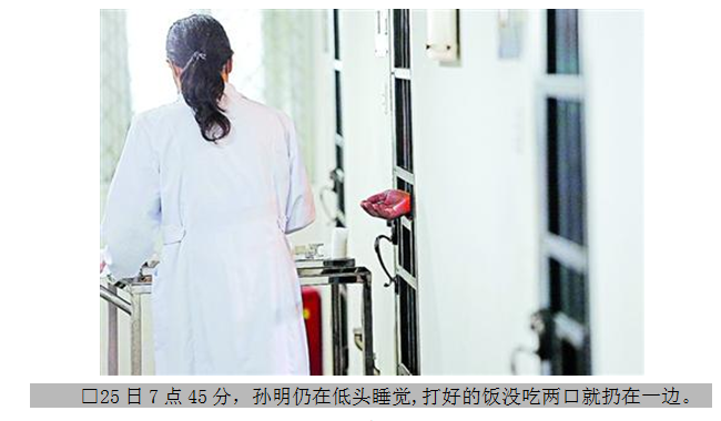 □25日7点45分,孙明仍在低头睡觉,打好的饭没吃两口就扔在一边。