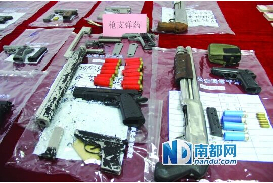 11把长短枪,60发子弹,两枚土炸弹,一批冰毒大麻……东莞警方昨日通报,经过一个多月侦查,成功摧毁一个藏匿于常平镇的制贩枪支和武装贩毒集团,抓获20多个团伙成员,枪贩与毒贩两“龙头”双双落网。行动过程未伤一兵一卒,目前正在全力追查毒品与私枪之流向。