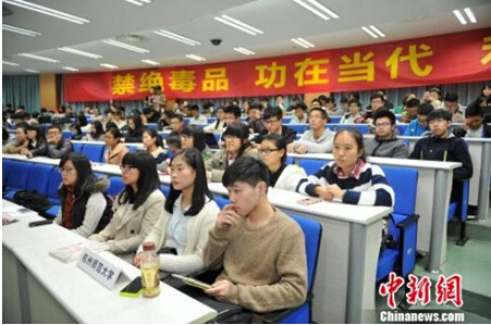 当天,缪敏红为来自浙江大学、浙江工业大学、杭州师范大学、浙江科技学院、浙江外国语学院等高校的300余名大学生讲授一堂毒品知识和禁毒形势的课程。