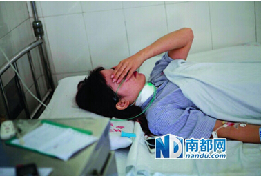 中堂医院,被割喉的“黑眼睛”店员张昭凤(19岁),经抢救后推出IC U,所幸无生命危险。记者 方光明 摄