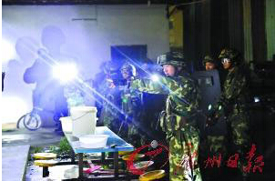此时,收网时机已成熟,广东边防总队出动150余名武警官兵,兵分多路对主要团伙成员进行抓捕、对制毒工场进行打击。