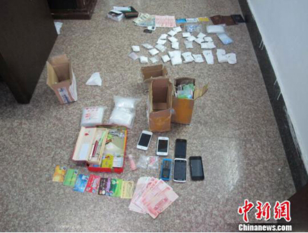现场缴获的毒品及贩毒工具。