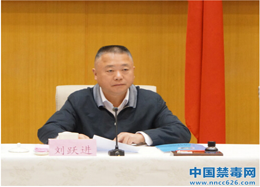 2015年5月11日上午,2015年国家禁毒委员会全体会议暨部署全国禁毒工作电视电话会议召开。图为国家禁毒委员会副主任兼国家禁毒委员会办公室主任、公安部部长助理刘跃进讲话。中国禁毒网发