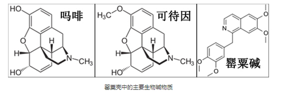 吗啡的衍生物“盐酸吗啡”是临床上常用的麻醉剂,有极强的镇痛作用,它还可作为镇痛剂、镇咳剂和止泻剂,但其最大缺点是易成瘾;吗啡的二乙酸酯更是臭名昭著的毒品海洛因。可待因同样有止咳和镇痛作用,其效果强于一般解热、镇痛药,弱于吗啡。罂粟碱主要能解除平滑肌,特别是血管平滑肌的痉挛,并可抑制心肌的兴奋性,其盐酸盐可治疗心绞痛和动脉栓塞等症。罂粟壳中的这几种生物碱物质都具有不同程度的致瘾性;虽然在罂粟壳中的含量不如在罂粟浆汁、叶子中的含量高,但长期食用,对人体健康会构成危险。