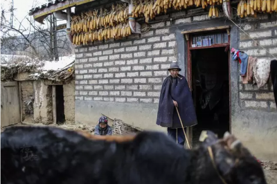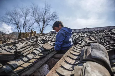 日哈乡9岁的尔木熟练地爬上了自家屋顶,揭瓦爬进去拿钥匙。她说奶奶年纪越来越大,经常把钥匙锁在屋里。她父亲早年吸毒、酗酒,摔下山身亡。如今小学三年级的她,需要独自走两个小时山路才能到学校。