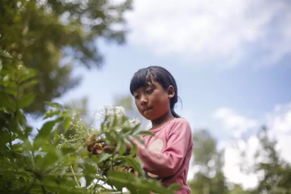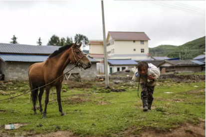 十岁的吾果悄悄地到家后的小树林,采了一束野花准备去安慰奶奶。奶奶和志愿者聊起家中情况时,不禁伤心落泪。在照片拍摄的八天前,吾果的妈妈因为病发,在路上掉下河里溺亡。