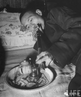 另外,吸大烟的人也有两个人对面躺着吸的。有的人是二人一起去的,有的是事先约好的,准时到烟馆碰头;有的是两人平时关系不错,或是亲属,碰上一位正抽呢,另一位拿出自己的烟份躺在对面,两人对抽;还有的是今天没有钱;又犯了烟瘾,由另一位拿出钱来,用他的烟证把烟份买来,两人合抽,也不过是出钱的人多吸几口罢了。他们对面吸大烟,不管认识不认识的,都是同使一套烟具、一杆烟枪。抽吸时是你吸一口,我吸一口,来回递,从不擦烟嘴,由对方从嘴里拿出,再放入另一方嘴里,没人计较对方的嘴干净与否。