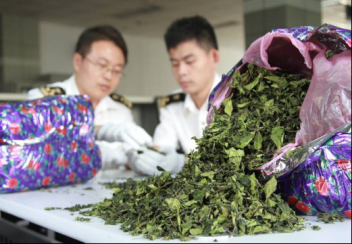 近日,青岛海关查获一起邮递渠道走私进境新型毒品恰特草案,抓获犯罪嫌疑人两名,现场查扣恰特草9.8公斤。