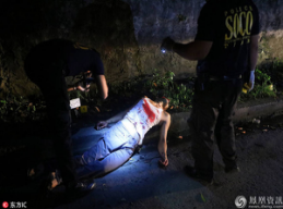 在7月11日左右,马尼拉街头一具毒贩尸体被拿出示众,死者的脸被多层包装胶带捆绑,上身放着一个纸板,上面写着“我是毒贩”。