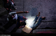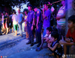 图为菲律宾马尼拉,民众围观在警方行动中被击毙的毒贩尸体,有人拿出手机拍照,还有人用衣服捂住口鼻
