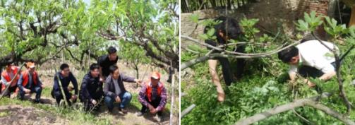 会后,踏查小组也来到小荡村、长堰村、四团村、新桥村等地区,对宅前屋后、田间地头、种植户、养殖户进行重点排查,并在新桥村一桃园中发现了45株罂粟,踏查小组成员当场进行铲除并对种植户进行法制教育。
